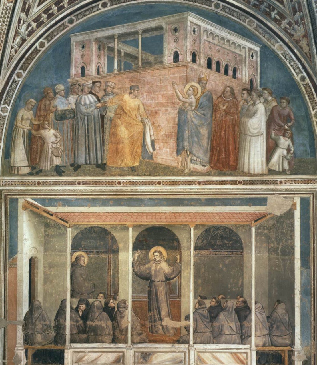 Have a look at this fresco from the Bardi chapel in Florence's Santa Croce Basilica, created by Giotto between 1325-1328.